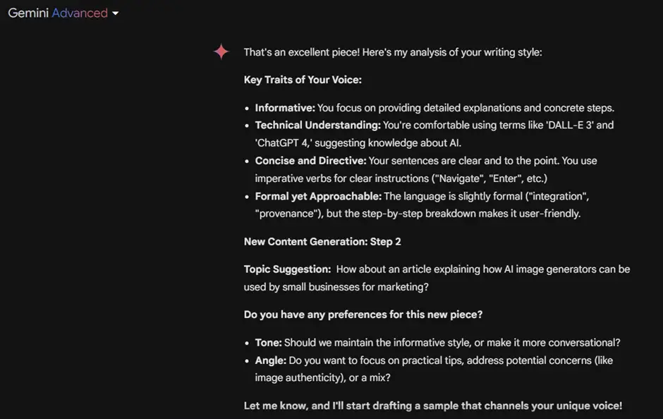 Gemini AI is extremely concise but feels like it is speeding and shortening text output in our writing style.
