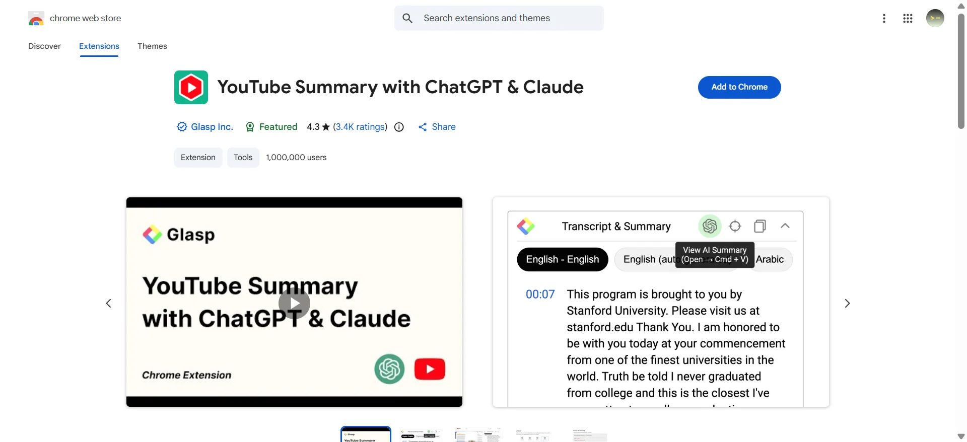 One click, and I get a timestamped summary of the entire video.