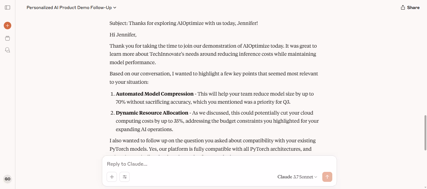 Claude AI can help you craft personalized, persuasive messages that guide leads toward a âyes.âÂ