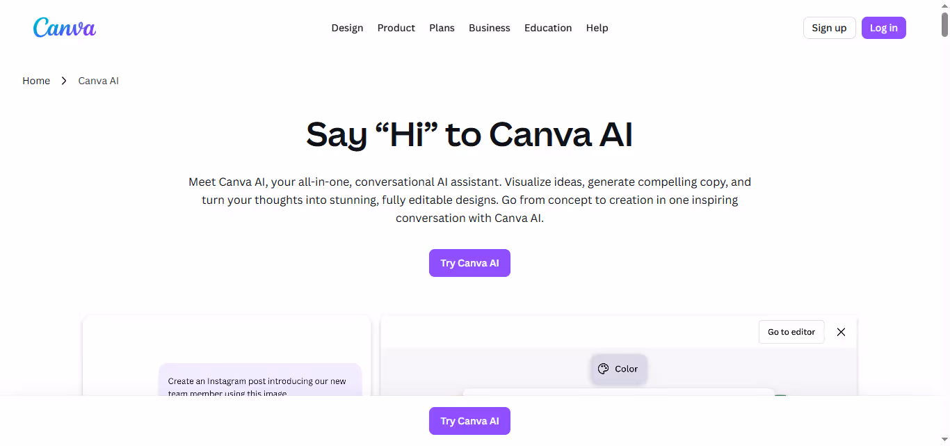 Canva AI: Combines AI generation with ready-made templates, so you can turn an image into a finished social post or ad instantly.