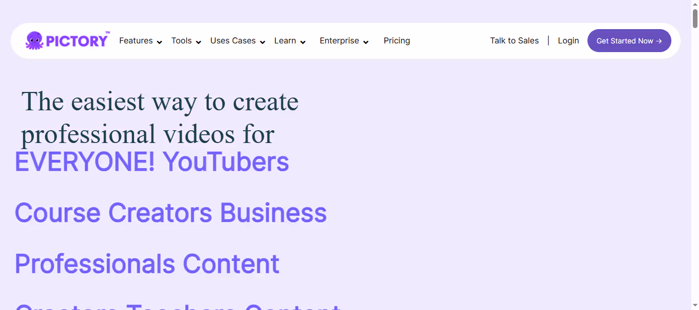 Why it’s a strong alternative: Pictory transforms long-form content into short, engaging videos, making it perfect for repurposing webinars, blogs, and podcasts.