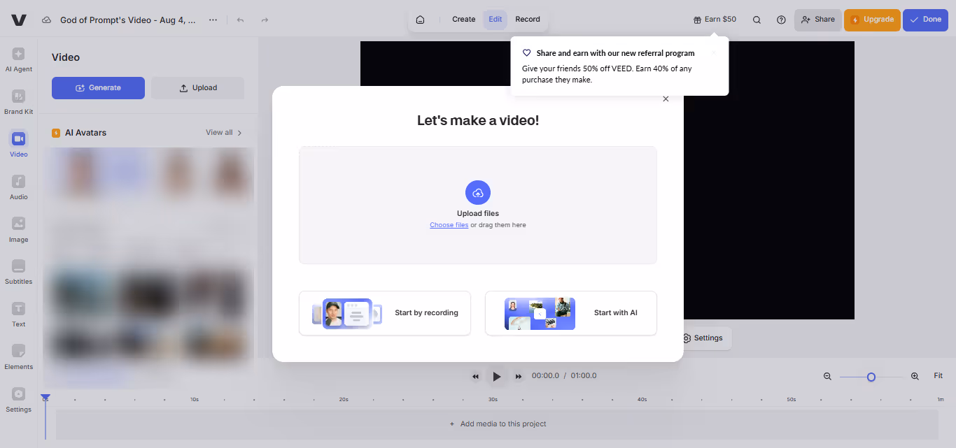 File Support: VEED accepts MP4, MOV, AVI, and most common formats. No need to convert beforehand.