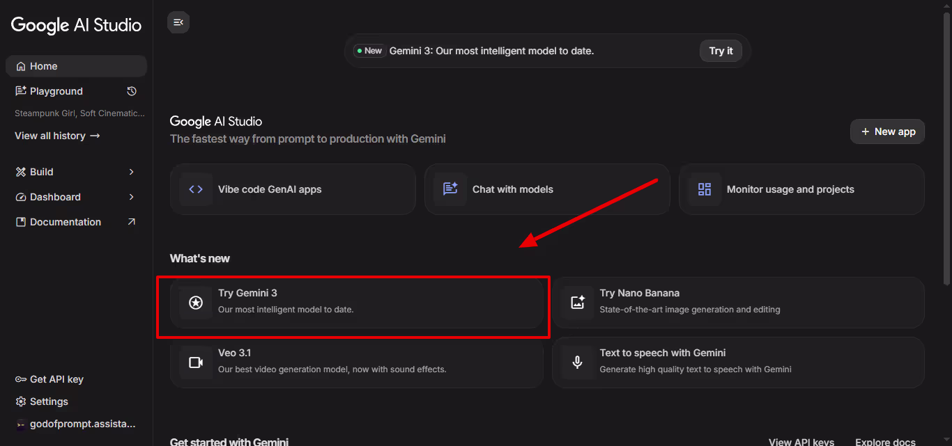 How to access:Visit Google AI Studio, sign in with your Google account, and start building.