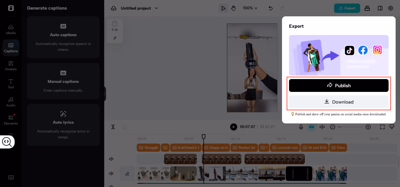 Alternatively, hit "Publish" to post the content straight out to your social profiles.